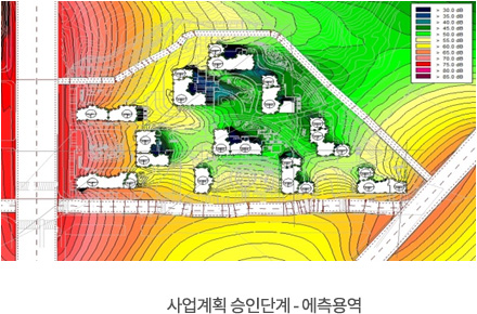 공동주택에서 인근 도로 및 철도 발생소음이 건물의 실내 및 실외에 미치는 영향을 사업계획 승인단계 시 예측하고 사용검사단계 시 준공 측정하여 주택건설기준 등에 관한 규정 제 9조의 법적기준에의 적합성 판단 기준에 의해 평가한다.