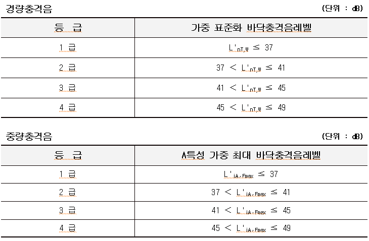 바닥충격음 차단성능의 등급기준