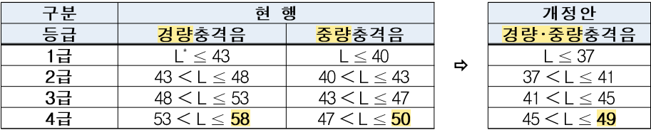 - 중량충격음은 저주파 중심으로 평가하던 방식에서 사람의 귀가 들을 수 있는 청감특성을 고려한 방식으로 변경하였다.